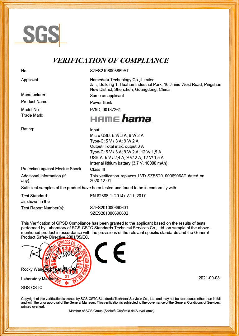 移动电源产品品质证书1