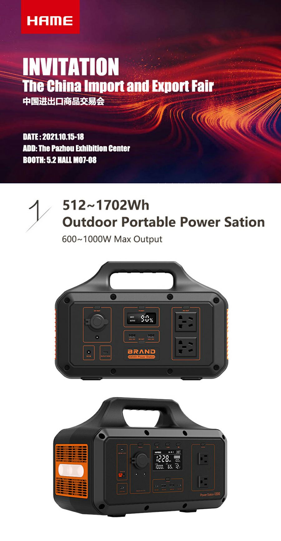 九游·体育·九游官方网站-九游(中国)携户外储能电源和MagSafe移动电源出席第130届广交会线下展览,展台位于广交会展览馆A区5号馆5.2 M07~08,欢迎莅临。
